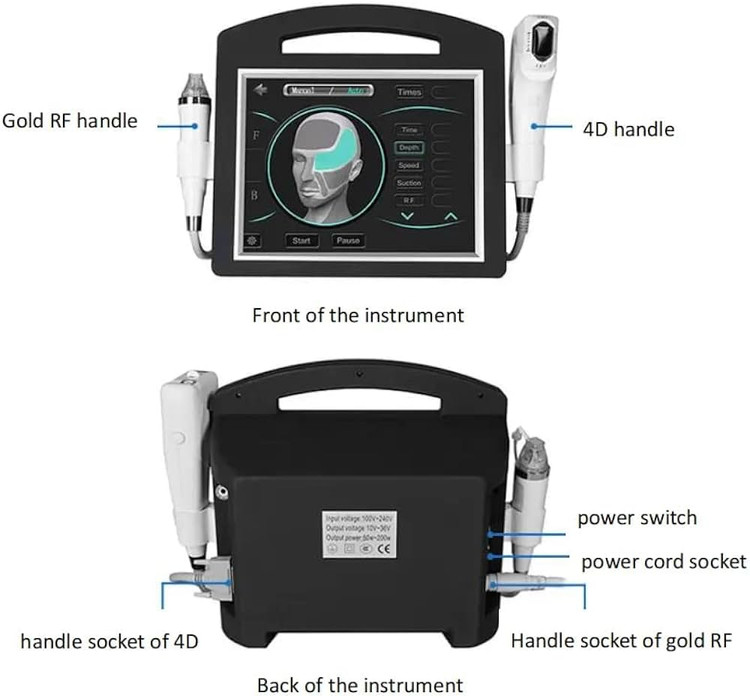 دستگاه جدید ما (4 بعدی + فرکانس رادیویی): 2 در 1، دو در یک، فناوری میکروکریستال های RF با نقطه ثابت چند ردیفی + مقطعی است. 4Dmulti-row را با میکروکریستال های RF طلا ترکیب می کند و اثر درمانی پیری پوست را بهتر خواهد کرد و به طور موثری پوست را سفت و تقویت می کند و در عین حال می تواند به طور موثر وضعیت پوست را به صورت کلی بهبود بخشد و پوست را جوان و سالم را کنند، Trinity و سه ضد پیری ابعادی اثر بالینی توسط کارشناسان و موسسات پزشکی و زیبایی شناسی به اتفاق آرا به رسمیت شناخته شده است. دستگاه زیبایی اولتراسونیک چند خطی 4 بعدی بعد از دستگاه زیبایی Ultrasonic Beauty مداوم Thermage یک ابزار سیستم ضد پیری معتبرتر و قوی تر است. این جایگزین اثرات مختلف جراحی سنتی ضد چروک صورت – از جمله لیفت صورت، از بین بردن دو چانه، لیفتینگ استحکام، چین و چروک، سفت کردن پوست و غیره می شود. مشکل پیری و افتادگی صورت و اعضای بدن را به طور کامل حل می کند و خطوط را برای بازگرداندن پوست بازسازی می کند. جوانی!در مقایسه با اثرات تکنولوژی تک خط قبلی بادوام تر است. Gold RF ابزاری با تکنولوژی بالا است که شبکه، RF و میکرو کریستال را ادغام می کند، علاوه بر جوانسازی صورت، میکروکریستال های فرکانس رادیویی طلایی می توانند کیفیت پوست را مانند منافذ و حفره های بزرگ را بهبود بخشند و کانال های کشش و اسمیدروز زیر بغل را درمان کنند.